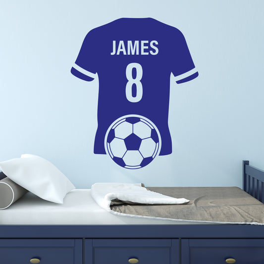 Personalised Football Shirt Wall Decal – Custom Name & Number Soccer Wall Sticker for Kids Bedroom or Sports Room