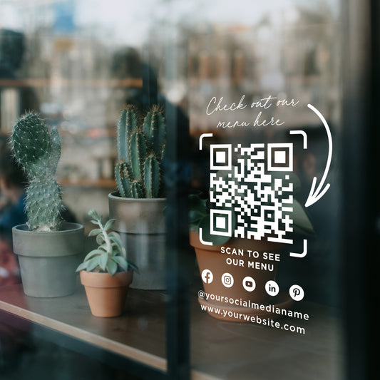 Custom QR Code & Social Media Vinyl Decal – Personalised Sticker for Menus, Shops, Salons & Small Businesses